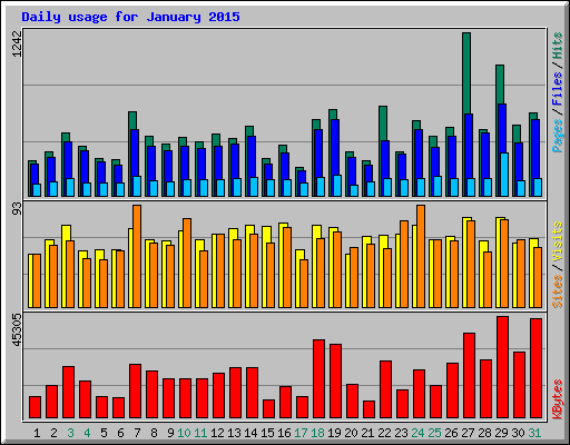 | Day | Hits | Files | Pages | Visits | Sites | KBytes | ||||||