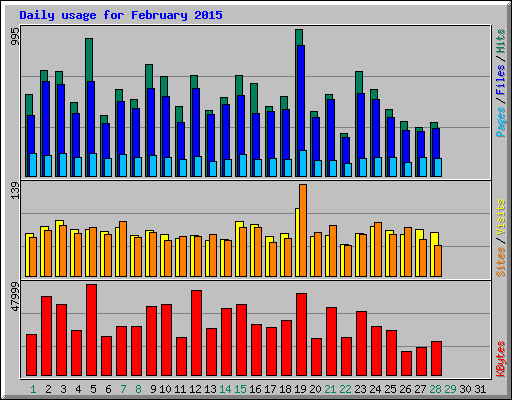 | Day | Hits | Files | Pages | Visits | Sites | KBytes | ||||||