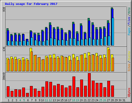 | Day | Hits | Files | Pages | Visits | Sites | KBytes | ||||||