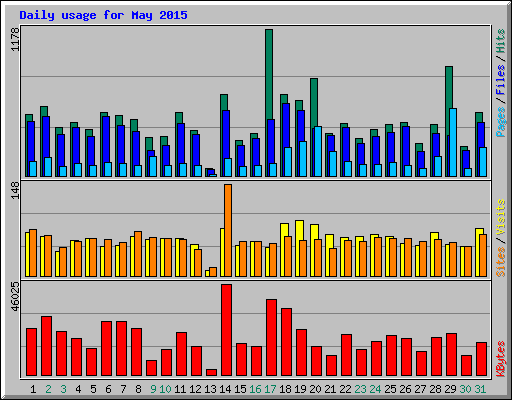 | Day | Hits | Files | Pages | Visits | Sites | KBytes | ||||||