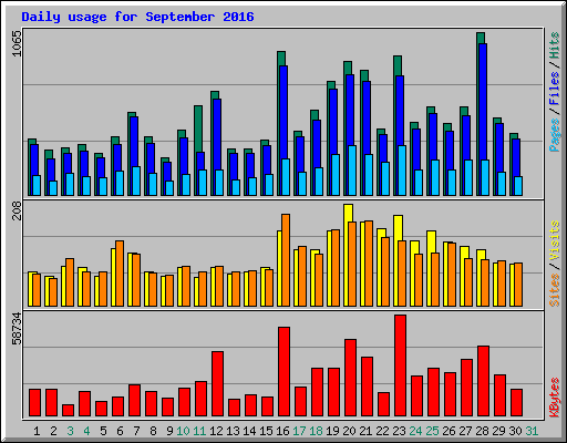 | Day | Hits | Files | Pages | Visits | Sites | KBytes | ||||||